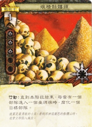 :直到本阶段结束,每当有一个部队进入一个弃牌堆时,腐化一个目标部队。