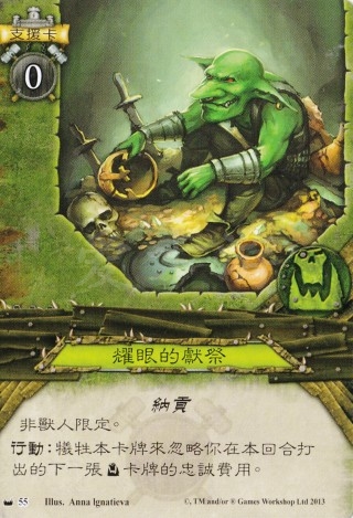 :牺牲本卡牌来忽略你在本回合打出的下一张兽人卡牌的忠诚费用。