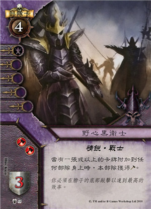当有一张或以上的卡牌附加到任何部队身上时,本部队获得