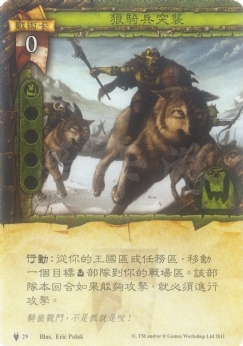 :从你的王国区或任务区,移动一个目标兽人部队到你的战场区。该部队本回合如果能够攻击,就必须进行攻击。