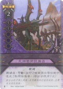 功能说明战场区行动:支付2个资源向每位对手造成2点间接伤害。(每回合限一次)