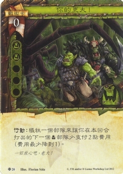 :牺牲一个部队来让你在本回合打出的下一个兽人部队少支付2点费用(费用最少降到1)。