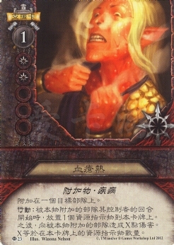 行动:被本物附加的部队其控制者的回合开始时,放置1个资源指示物到本卡牌上。之后,向被本物附加的部队造成X点伤害。X等于在本卡牌上的资源指示物数量。