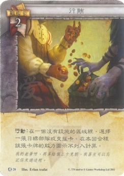 :在一个没有设施的区域里,选择一张目标部队或支援卡。在本回合里该张卡牌的能力图示不列入计算。