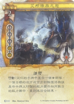功能说明行动:从你的手牌中展示一个高等精灵部队。一个目标的攻方或守方部队获得与该展示卡牌上印制的能力图示相同数目的能力图示,直到本回合结束。
