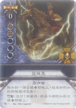 功能说明附加到一个目标帝国部队上。被本物附加的部队获得坚韧1。