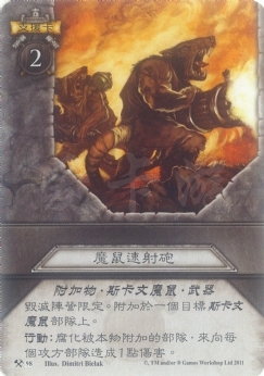 功能说明毁灭阵营限定。附加于一个目标斯卡文魔鼠部队上。