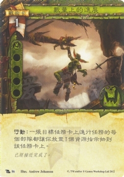 行动:一张目标任务卡上进行任务的每个部队都让你放置1个资源指示物到该任务卡上。