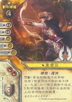 行动:当本部队进行攻击时,放置1个资源指示物到本卡牌上。之后,向一个目标对手造成X点间接伤害。X等于在本部队上的资源指示物数量。