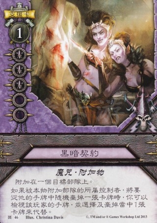 如果被本物附加部队的所属控制者,将要从他的手牌中随机弃掉一张卡牌时,你可以检视该玩家的手牌,并选择及弃掉当中1张卡牌来代替。