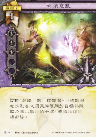 :选择一个目标部队。目标部队的控制者必须弃掉等同于目标部队能力图示数目的手牌,或牺牲该目标部队。