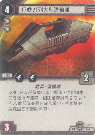 :在本部队集中来出击后,从你牌库的5张顶牌搜寻一个印制费用为2或以下的