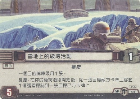 :在你的冲突阶段开始后,从一张目标地方卡牌上移动1个护盾标志到一张目标己方卡牌上。