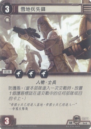 说明防护盾。(当本部队进入一次交战时,放置1个护盾标志在这交战中的任何部队或目的卡上。)