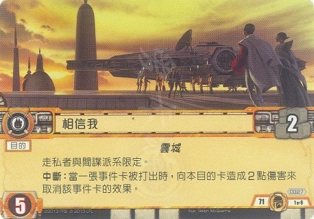 :当一张事件卡被打出时,向本目的卡造成2点伤害来取消该事件卡的效果。