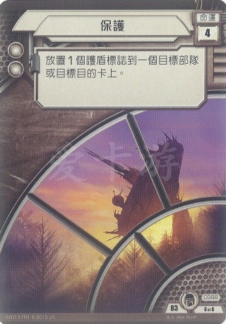 说明放置1个护盾标志到一个目标部队或目标目的卡上。