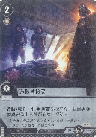 说明行动:牺牲一个帝国舰队军官部队来从一个目标帝国舰队载具部队上移除所有集中标志。