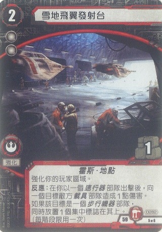 反应:在你以一个速行器部队出击后,向一个目标地方载具部队造成1点伤害。如果该目标是一个步行机器部队,同时放置1个集中标志在其上。(每阶段限用一次)