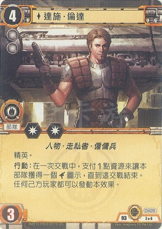 行动:在一次交战中,支付1点资源来让本部队获得一个部队伤害图示,直到这交战结束。任何己方玩家都可以发动本效果。