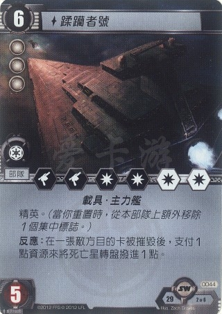 :在一张敌方目的卡被摧毁后,支付1点资源来将死亡星转盘拨进1点。