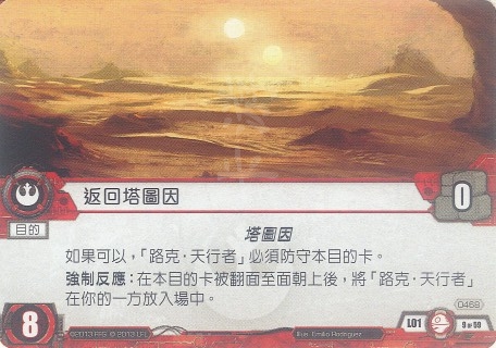 强制反应:在本目的卡被翻面至面朝上后,将路克·天行者在你的一方放入场中。