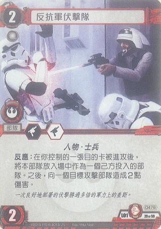 :在你控制的一张目的卡被进攻后,将本部队放入场中作为一个己方投入的部队。之后,向一个目标攻击部队造成2点伤害。