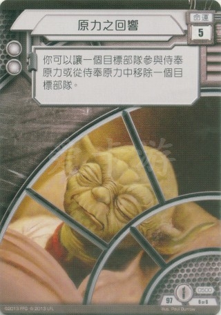 你可以让一个目标部队参与侍奉原力或从侍奉原力中移除一个目标部队。