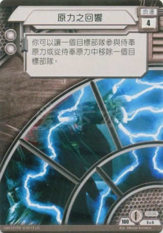 你可以让一个目标部队参与侍奉原力或从侍奉原力中移除一个目标部队。