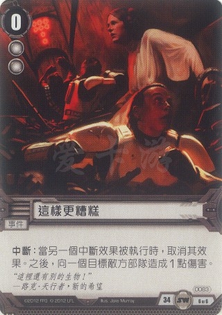 :当另一个中断效果被执行时,取消其效果。之后,向一个目标敌方部队造成1点伤害。