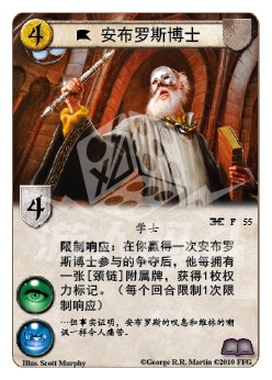 :在你赢得一次安布罗斯博士参与的争夺后,他每拥有一张[颈链]附属牌,获得1枚权力标记。(每个回合限制1次限制响应)