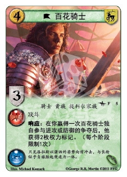 :在你赢得一次百花骑士独自参与进攻或防御的争夺后,他获得2枚权力标记。(每个阶段限制1次)
