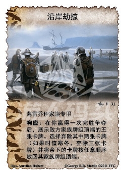响应:在你赢得一次完胜争夺后,展示败方家族牌组顶端的五张卡牌。选择弃除其中两张卡牌(如果时值寒冬,弃除三张卡牌)并将余下的卡牌按任意顺序放回其家族牌组顶端。
