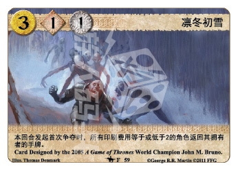 功能说明 本回合发起首次争夺时,所有印刷费用等于或低于2的角色返回其拥有者的手牌。