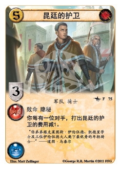 你每有一位对手,打出昆廷的护卫的费用减1。