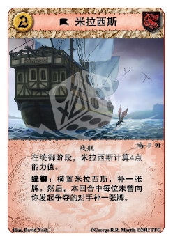 :横置米拉西斯,补一张牌。然后,本回合中每位未曾向你发起争夺的对手补一张牌。