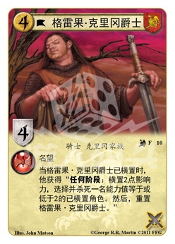 :横置2点影响力,选择并杀死一名能力值等于或低于2的已横置角色。然后,重置格雷果·克里冈爵士。”