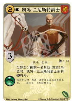 当你至少控制一名其他[贵族]角色时,凯冯·兰尼斯特爵士拥有权力争夺符号。