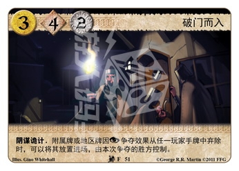 争夺的一部分效果从任一玩家手牌中弃除时,可以将其放置进场,由本次争夺的胜方控制。