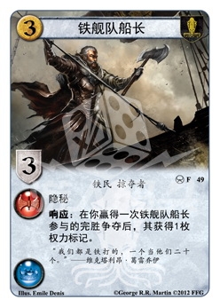 :在你赢得一次铁舰队船长参与的完胜争夺后,其获得1枚权力标记。