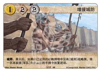 功能说明 城邦.展示后,如果你已使用的战略牌堆中没有[城邦]战略牌,将一名本家族[军队]角色从你的手牌中放置进场。