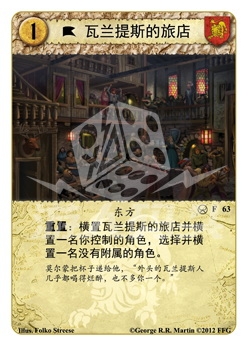 :横置瓦兰提斯的旅店并横置一名你控制的角色,选择并横置一名没有附属的角色。