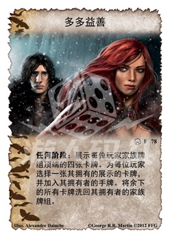 :展示每位玩家家族牌组顶端的四张卡牌。为每位玩家选择一张其拥有的展示的卡牌,并加入其拥有者的手牌。将余下的所有卡牌洗回其拥有者的家族牌组。
