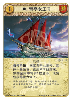 :横置青亭女王号,选择一名角色。直到本阶段结束,你的金库中每有1枚金币,该角色获得能力值+1。