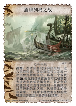 战略:在本回合的统御阶段后,进入史诗阶段,每位玩家可以发起一次由他选择的争夺。具有一个或更多强化的已横置角色可以被宣告为进攻角色或防御角色。每次争夺的胜方可以选择并控制一张由败方对手控制的地区牌,代替原本的争夺效果。(将此卡牌放置在你的战略牌组旁直到本史诗阶段结束。)