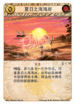 :在你失去一次争夺后,横置夏日之海海岸,在你的弃牌堆中选择两张卡牌。将这些卡牌选回你的家族牌组。