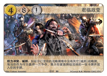 功能说明 权力冲突.城邦.如果你已使用的战略牌堆中没有其他[城邦]战略牌,每当你作为守方赢得一次争夺,展示你家族牌组顶端的一张卡牌并放入你的手牌。