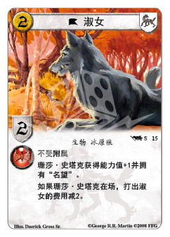 如果珊莎·史塔克在场,打出淑女的费用减2。