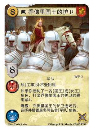 :乔佛里国王的护卫进场后,选择并横置最多两名非[军队]角色。