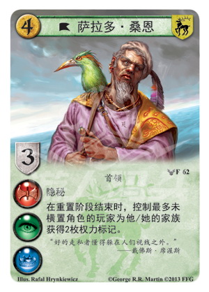 在重置阶段结束时,控制最多未横置角色的玩家为他/她的家族获得2枚权力标记。