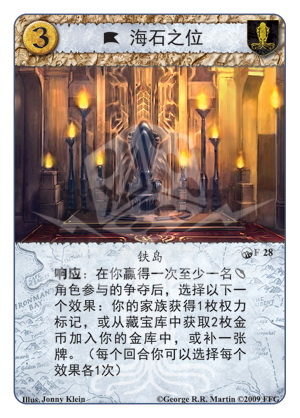 功能说明 响应:在你赢得一次至少一名高贵角色参与的争夺后,选择以下一个效果:你的家族获得1枚权力标记,或从藏宝库中获取2枚金币加入你的金库中,或补一张牌。(每个回合你可以选择每个效果各1次)